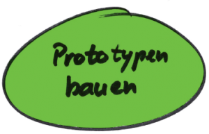 Für die selektierten Ideen sollen Prototypen gebaut werden. Sie müssen nicht komplett und nicht perfekt sein. Sie sollen die wichtigsten Merkmale der Idee aufweisen und zu weiteren Diskussionen anregen.